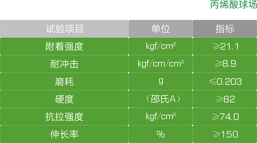 丙烯酸球場:色彩鮮艷,耐磨性好,保養容易,全天候使用,優異的抗紫外線性能