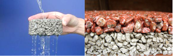 透水混凝土也稱為排水混凝土和生態透水混凝土或者透水地坪,是由小石子、水泥、摻合增粘劑、水、彩色強化劑、增強以及穩定劑等材料經一定比例調配拌制而成的一種多孔的新型環保地面鋪裝混合,具有透氣、透水和重量輕的特點,有效解除積水現象,并能高效地消除地面上的油類化合物等環境污染的危害,是維護環境生態平衡的優良鋪裝材料。